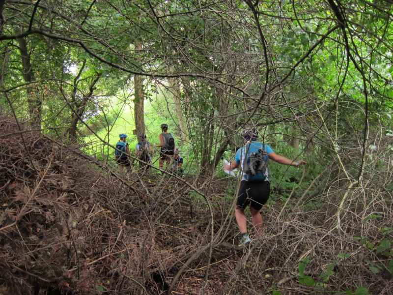 1+2: MTB Schon zu Beginn zeigen sich die Schwächen der Karte. Vermutlich Garmin Topo, Stand 1935. Die Waldwege entsprechen jedenfalls in den seltensten Fällen der Realität und auch die Suche der Zangen gestaltet sich ein bisschen wie Ostern, da sie mit solch sprechenden Beschreibungen wie “Baum” gut versteckt um Wurzeln gewickelt sind. Läuft, wenn ein paar Teams zusammen suchen.
