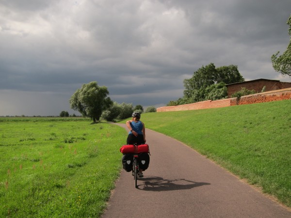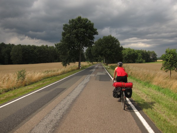 Trotz unserer gewaltigen Unlust, irgendwas zu planen, fuhren wir dann übrigens doch nicht ganz nach Kompass, sondern nach GPS, einem Track hinterher, den wir mit dem hervorragenden GPSies-Planer gebastelt hatten: “bitte eine Route für Rad von Jena nach Rostock”. Das hat erstaunlich gut funktioniert und wir waren meist auf recht ruhigen und sogar hübschen Radwegen unterwegs… traut sich noch jemand, das so auszuprobieren?